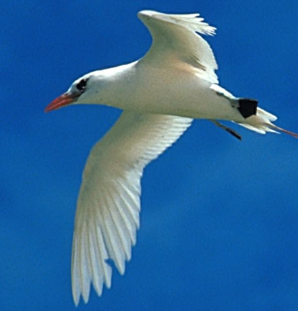 Kota’a do not swim or walk and cannot take off from a flat surface. Having the largest wingspan-to-body-weight ratio of any bird, Great Frigatebirds are essentially aerial, able to stay aloft for more than a week. Frigate birds fly up to 100 km from land, petrels 70 km, and terns up to 50 km.