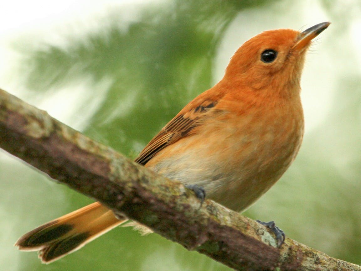 This delightful little bird, whose call sounds just like its Cook Islands Maori name, was still commonly seen throughout Rarotonga in the mid-1800s. By the early 1900s it was thought to have become extinct, until it was rediscovered living in dense bush in 1973.