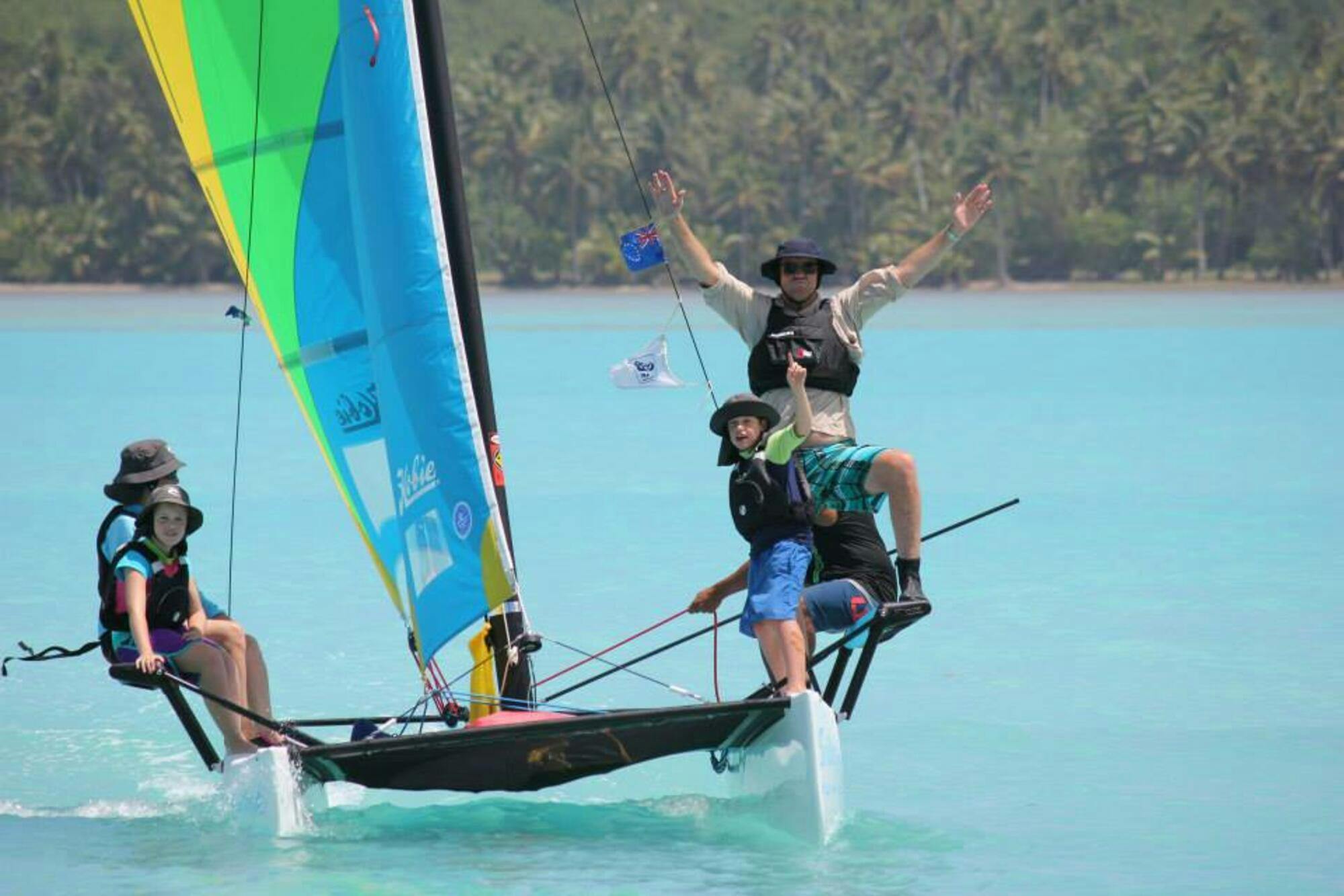 Sailing Aitutaki - Sail on one of Sailing Aitutaki's 17 hobie cats. Sailing Aitutaki have a range of sailing charters available to suit all, including families and groups. Become one with nature and the amazing marine life, see turtles up close (near enough to touch), snorkel the clear waters, feed the array of tropical fish and discover the motus (islets). Sailing Aitutaki has a selection of windsurfing boards and sails available for hire. Discover the lagoon while experiencing an exhilarating ride on one of their windsurf boards. Aitutaki is quickly becoming a sought after windsurfing destination. Sailing Aitutaki guarantee an unforgettable time on the water! Windsurfing lessons are available for all ages.